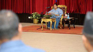 राष्ट्रपति कार्यालय शीतल निवासमा आज आयोजित काठमाडौँ उपत्यकाका महानगरपालिका, नगरपालिका र गाउँपालिकाका प्रमुखरउपप्रमुख, अध्यक्षर उपाध्यक्षहरुसंगको अन्तरक्रियामा राष्ट्रपति भण्डारीले मुलुकको समृद्धिका लागि शिक्षा, स्वास्थ्य क्षेत्रको विकाससँगै पर्यटन र कृषिलाई विशेष प्राथमिकतामा राखेर काम गर्न स्थानीय तहहरूलाई आह्वान गर्नुभयो ।